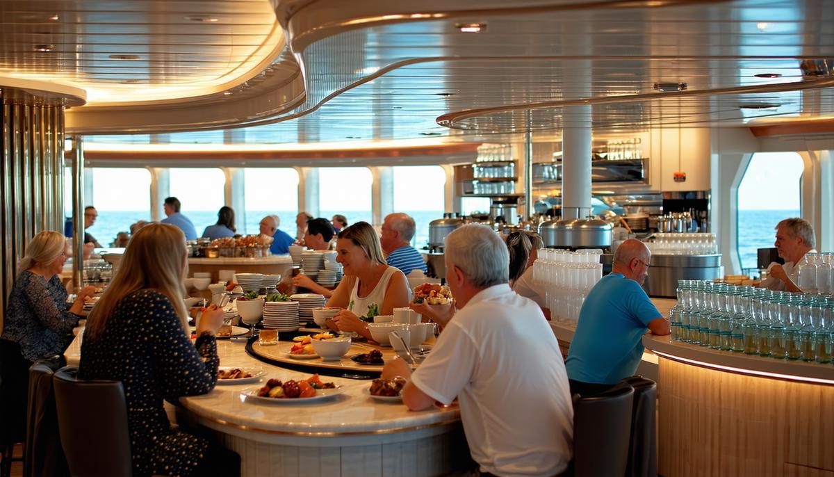 On embarkation day, seek out alternative dining venues instead of the main buffet. Many ships have specialty coffee shops, casual cafes, or less frequented dining rooms open for lunch. These options provide a quieter setting to enjoy your first meal onboard without crowds.